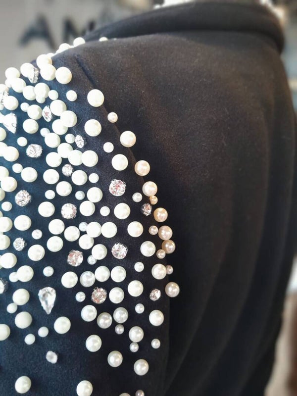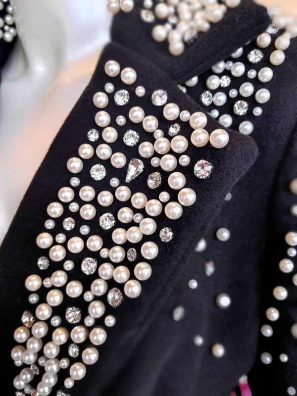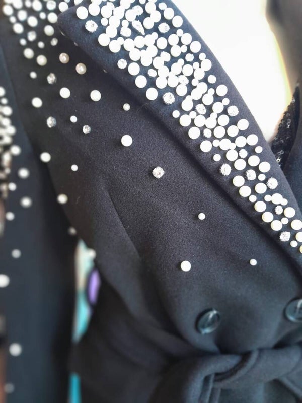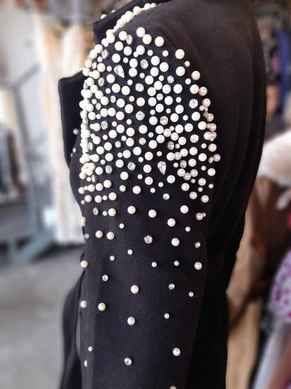 Abrigo largo con aplicacion de perlas y pedreria